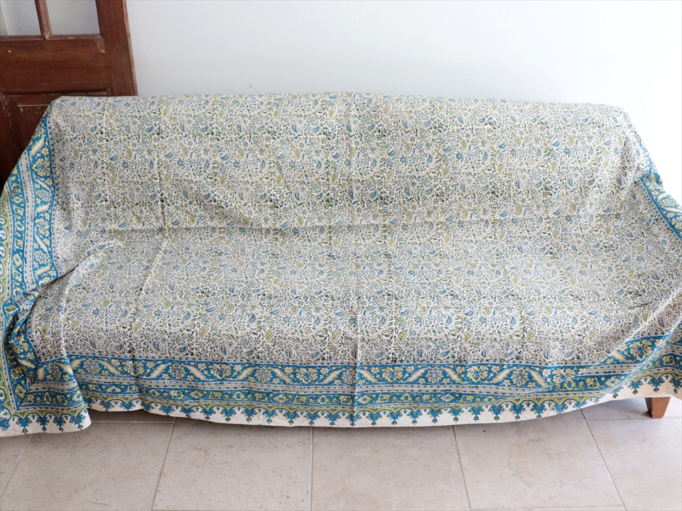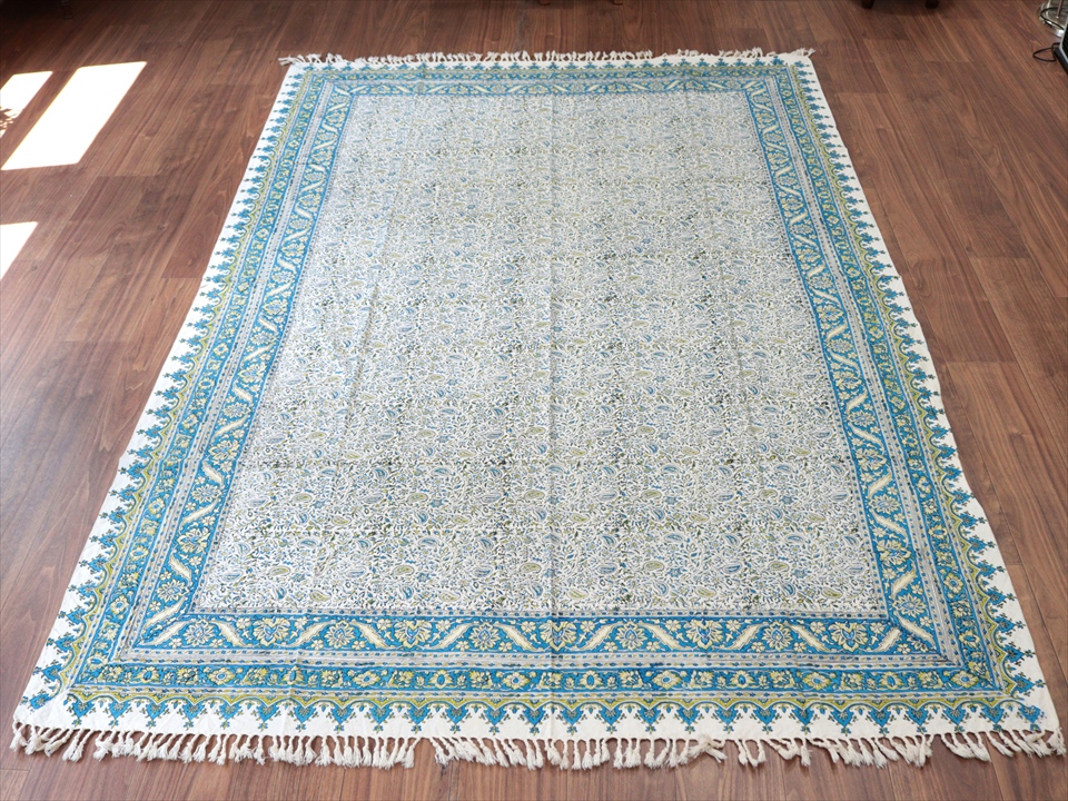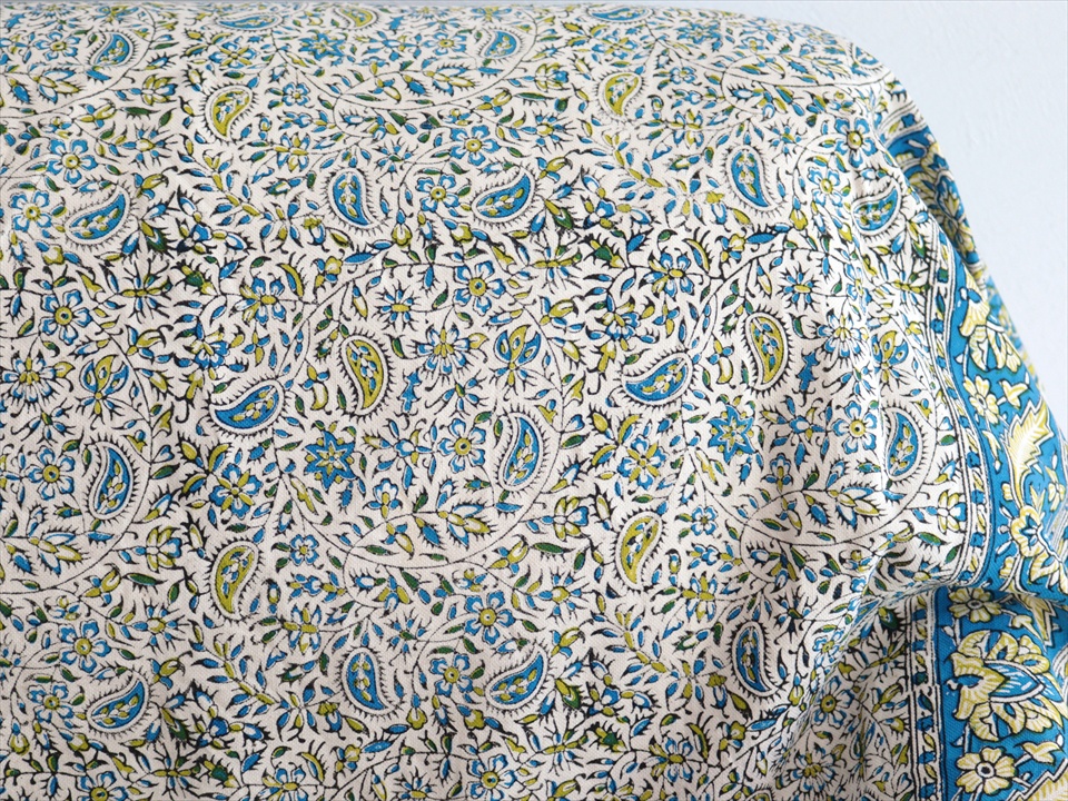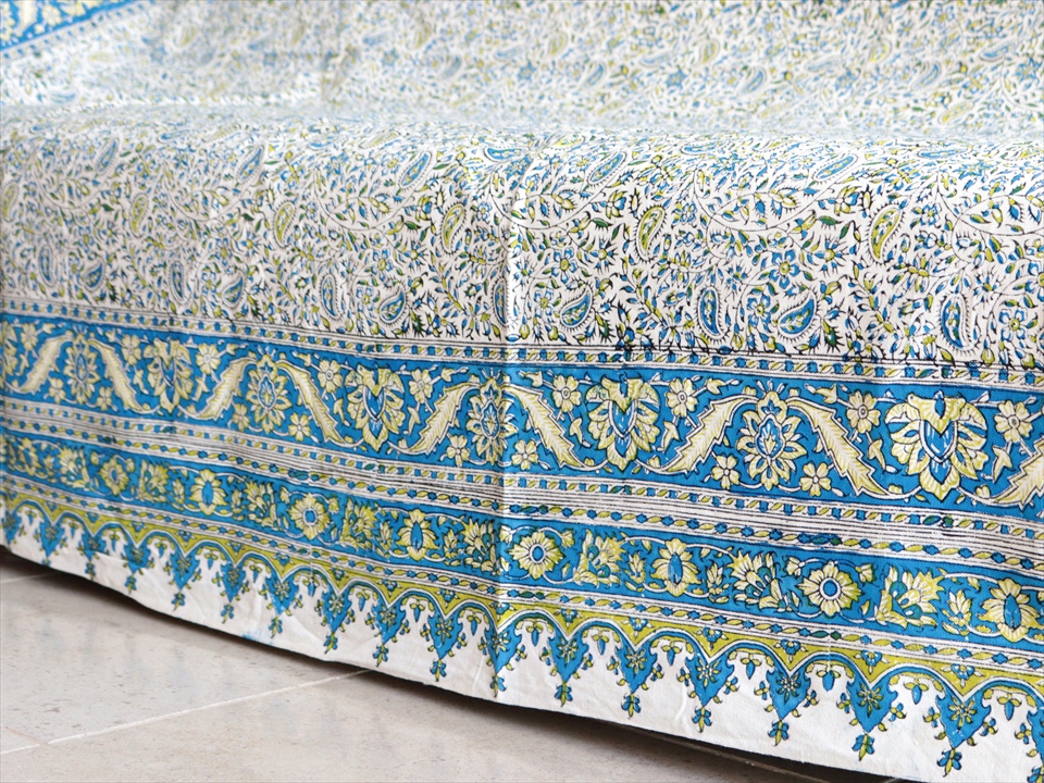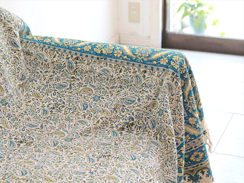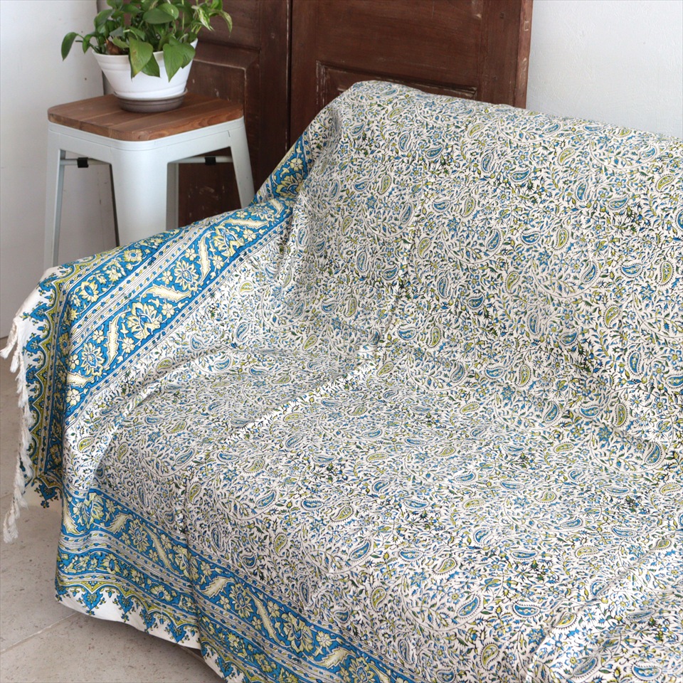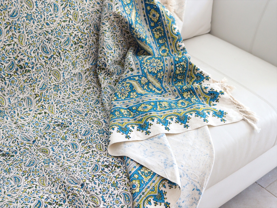 Key:コットン 染色 ブロックプリント 木版 捺染 伝統工芸 ペルシャブルー ペイズリー フリークロス マルチカバー ベッドスプレッド ベッドカバー ソファカバー カーテン タペストリー ファブリック インテリアファブリック クラフト インテリア ペルシャ ペルセポリス イラン 中東 シルクロード アジアン エスニック