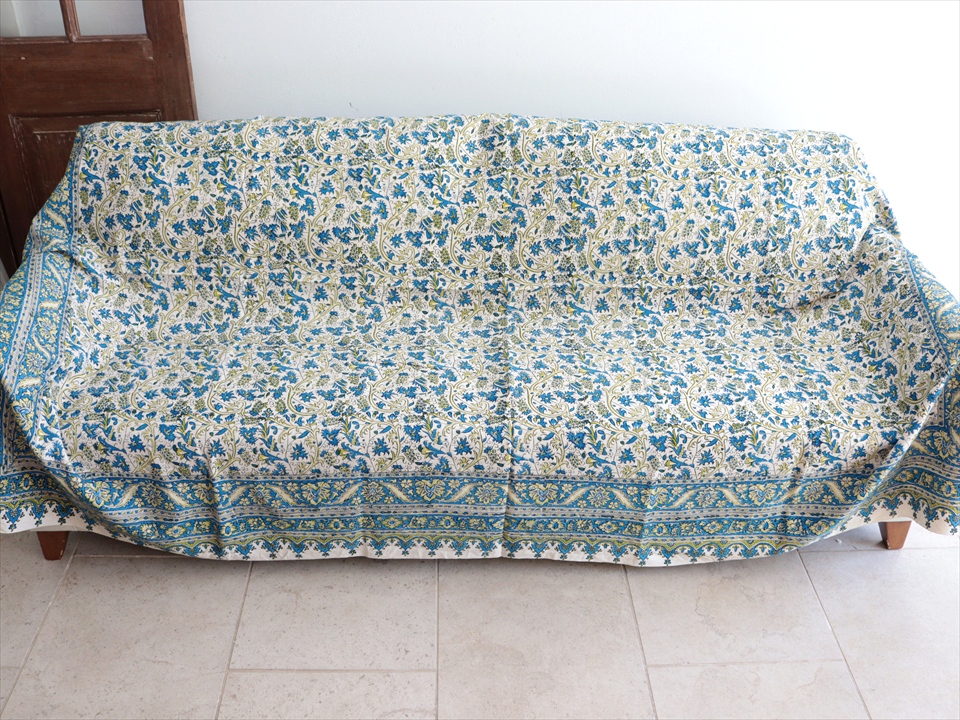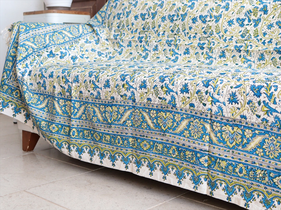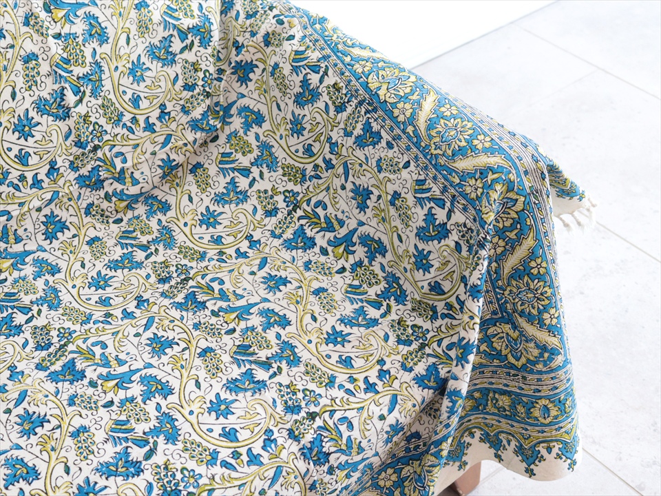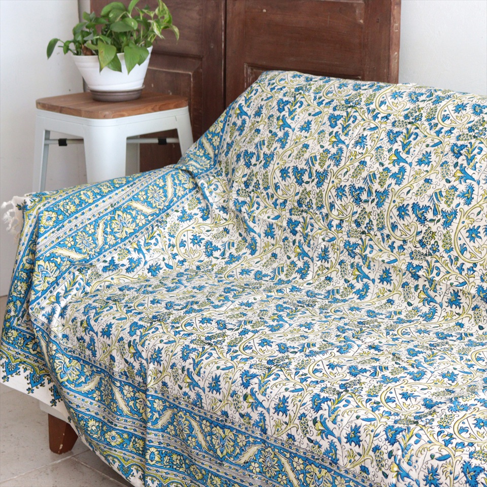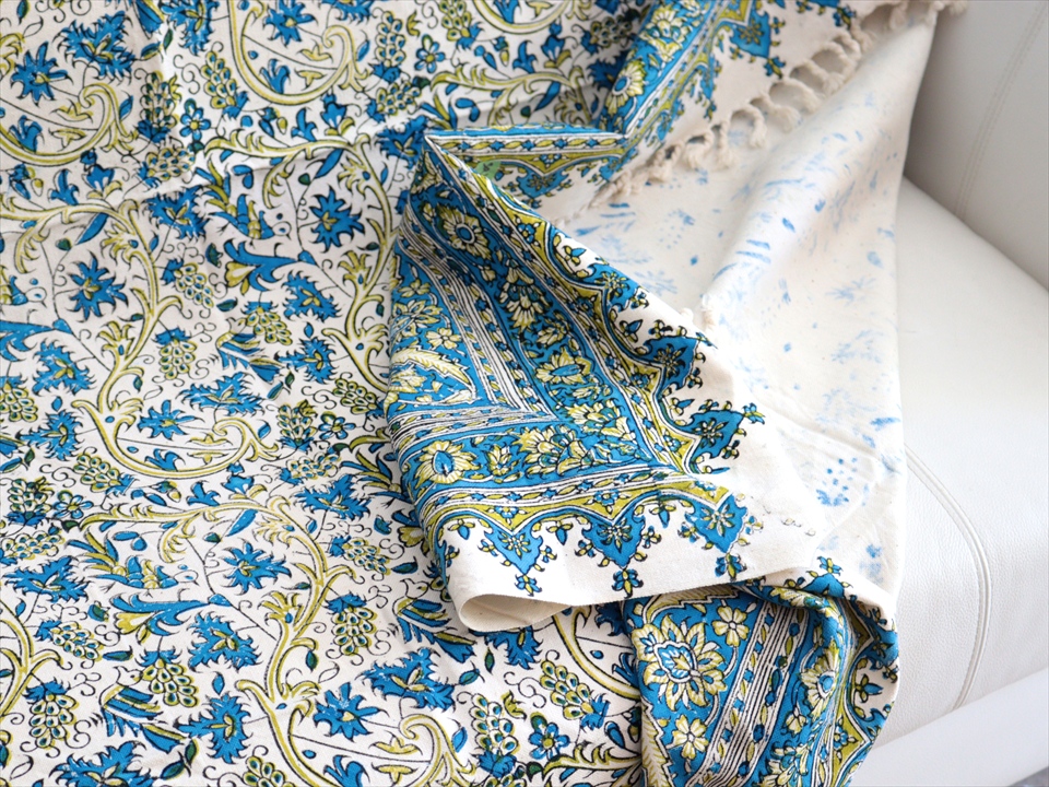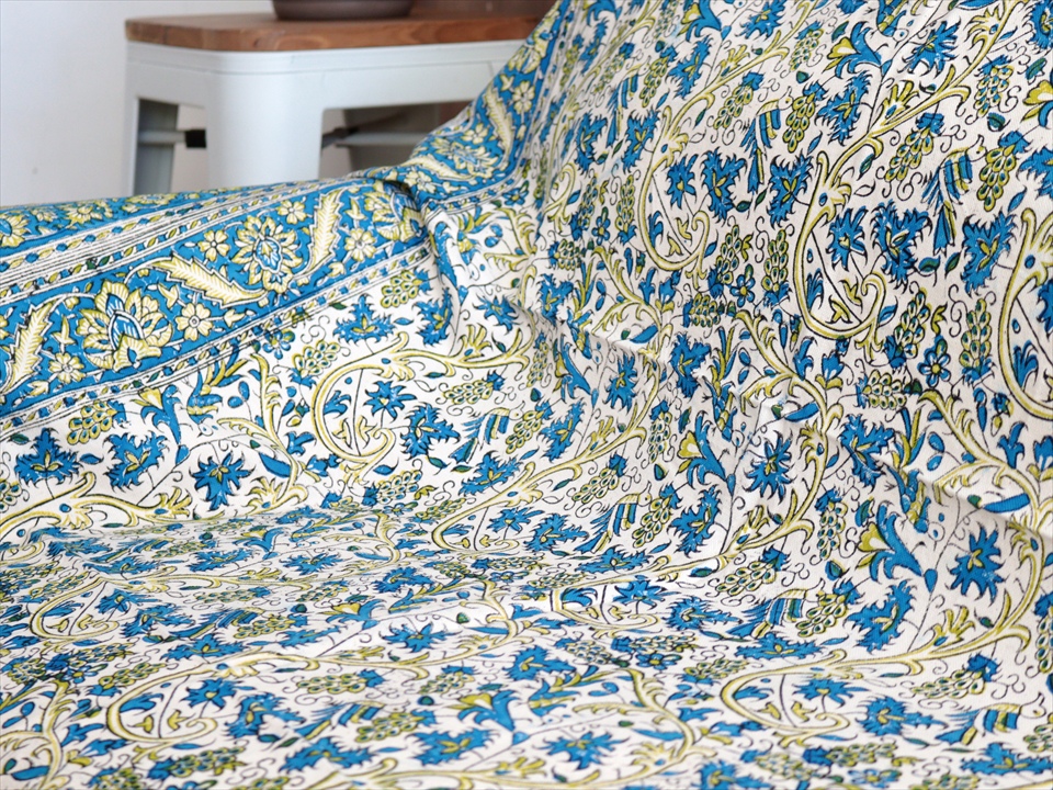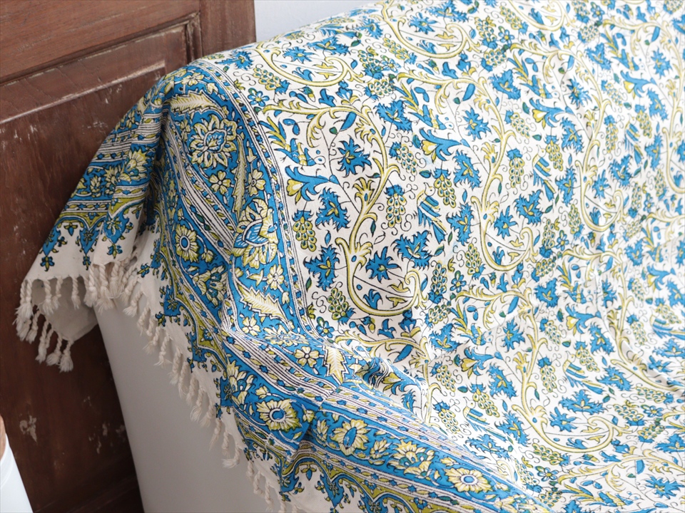 Key:コットン 染色 ブロックプリント 木版 捺染 伝統工芸 ペルシャブルー ペイズリー フリークロス マルチカバー ベッドスプレッド ベッドカバー ソファカバー カーテン タペストリー ファブリック インテリアファブリック クラフト インテリア ペルシャ ペルセポリス イラン 中東 シルクロード アジアン エスニック