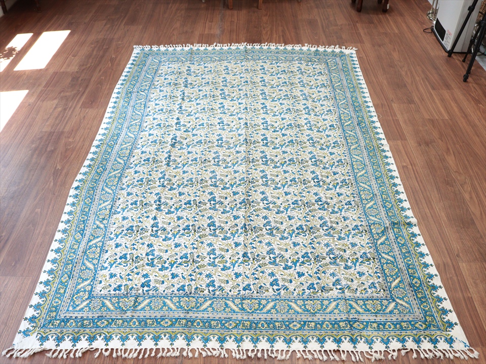 ペルシャ更紗 ガラムカール 240×156cm ブルー/グリーン フラワー柄 テーブルクロス ソファカバー