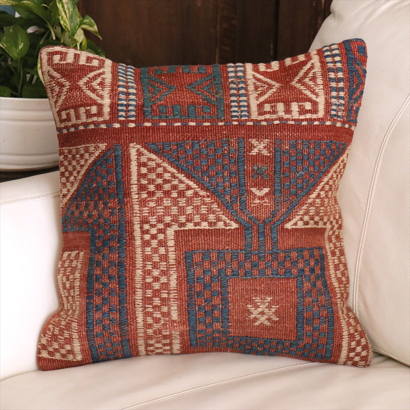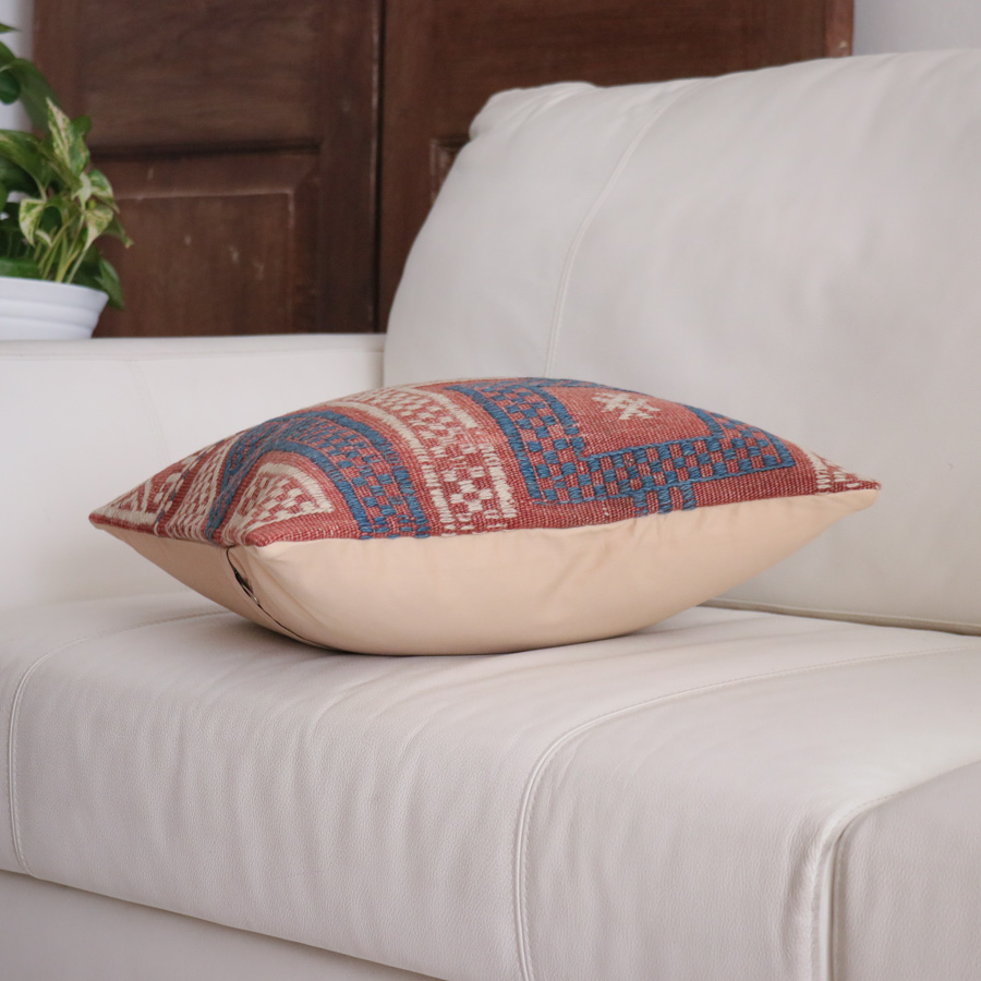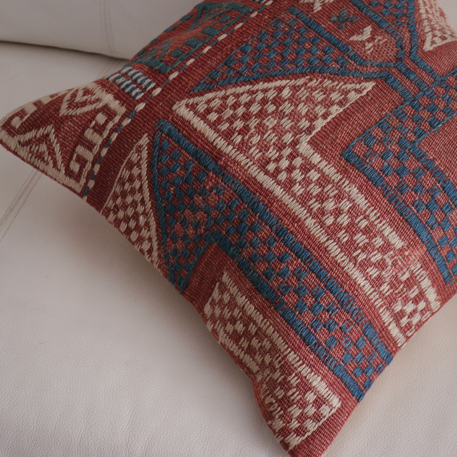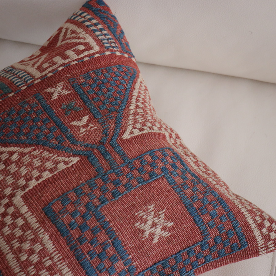 トルコ西部、エーゲ海に近いバルケスィールのオールドキリムから。すっかり色褪せて落ち着いた風合いになっています。ジジムは平織りのキリムにもう一本飾り糸を一緒に織り込んでいく織り方で、表面にすこし立体感があります。