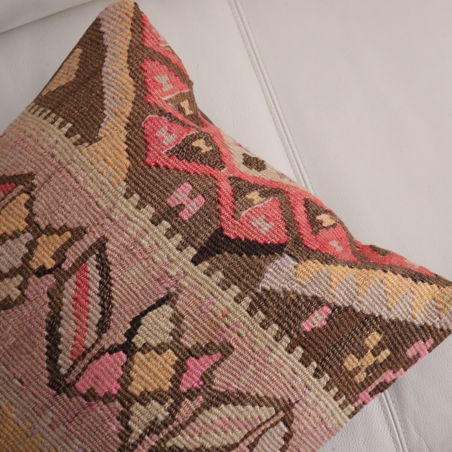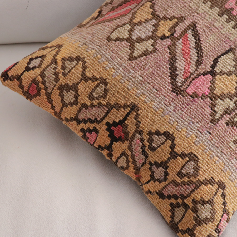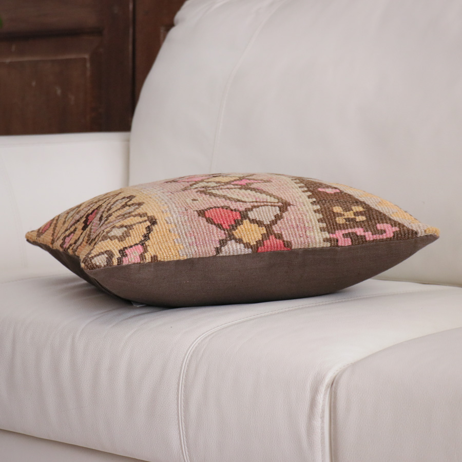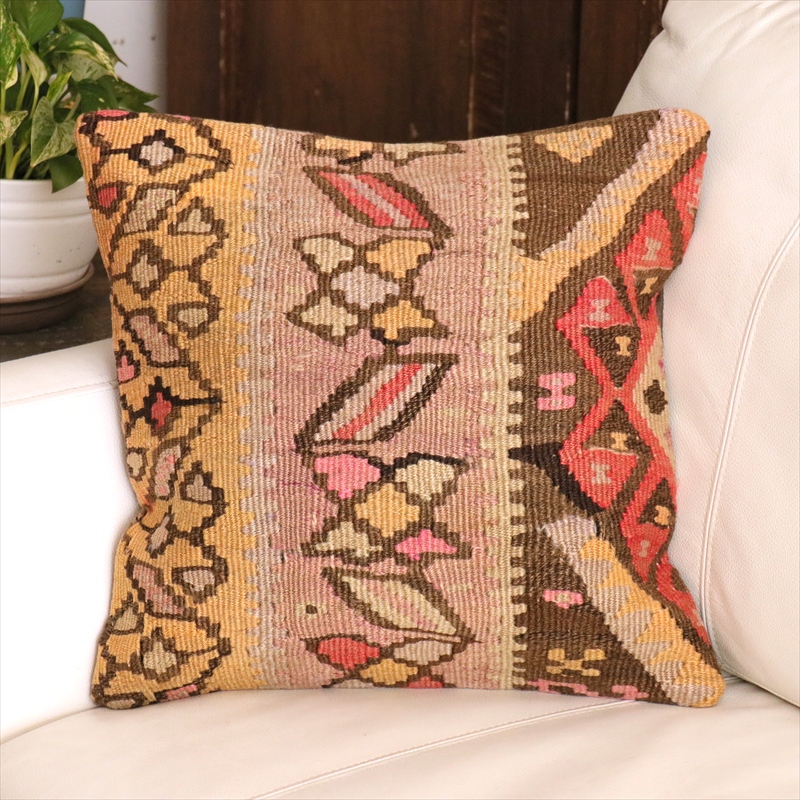 トルコ東北部で織られたオールドキリムからのカット。中央に並んだお花のモチーフや四角く囲まれたモチーフなどに、アルメニアなどと共通するこの地域のキリムの特徴があらわれています。全体的に、色褪せてやさしい印象です。