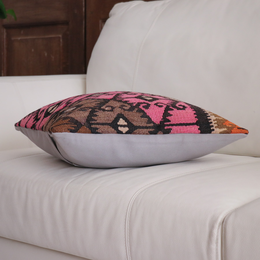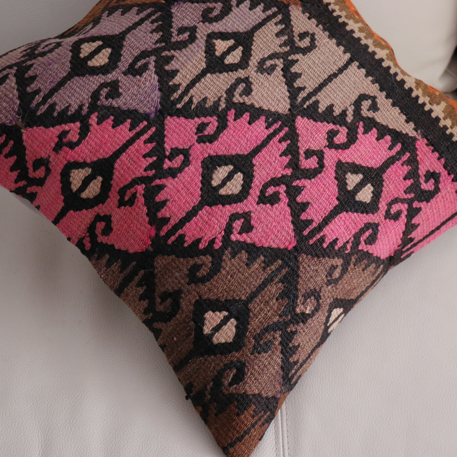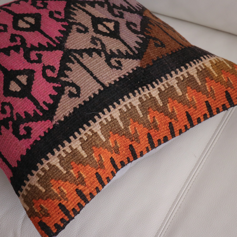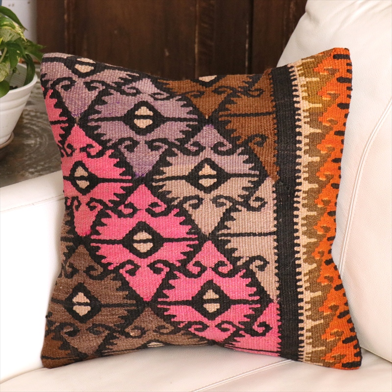 エリベリンデの連続モチーフが入った大型のキリムからのカットピース。濃い鮮やかな色を残しています。キリムの織りは、やや太めの毛糸を使っていて、厚みがありやわらかな織り地です。