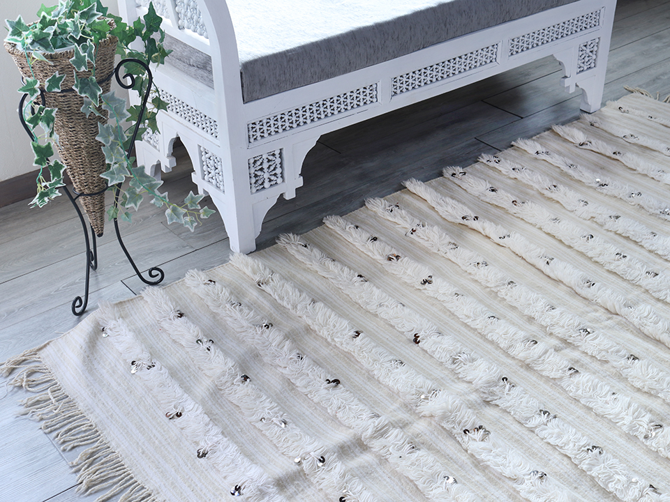 モロッコ・ウエディング用のブランケットキリム Moroccan Wedding Blankets220×143cm ホワイト・ベッドスロー