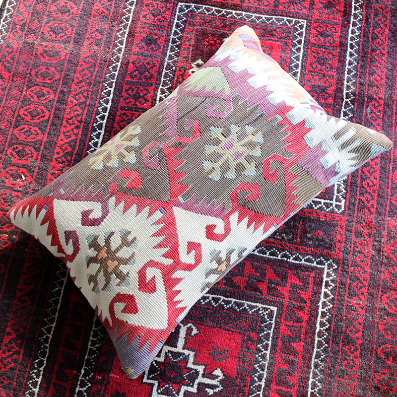 オールドキリムクッション・長方形ビッグピロー Turkish Old Kilim Cushion 赤のエリベリンデ
