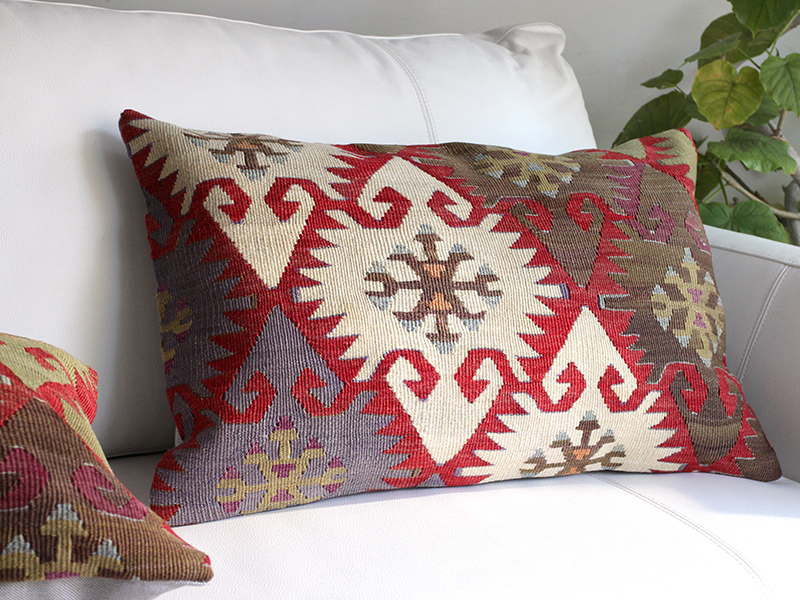 オールドキリムクッション・長方形ビッグピロー Turkish Old Kilim Cushion 赤のエリベリンデ