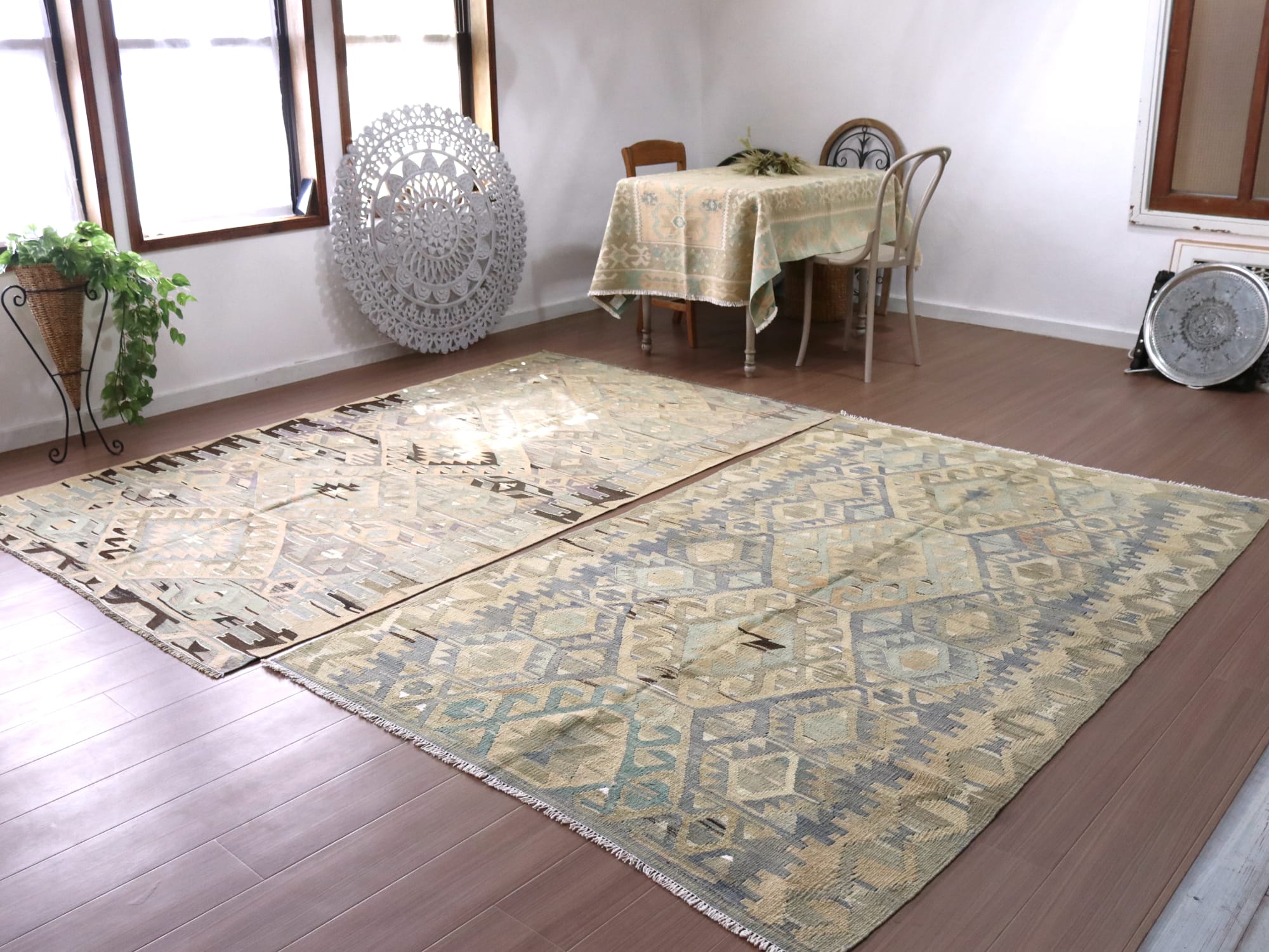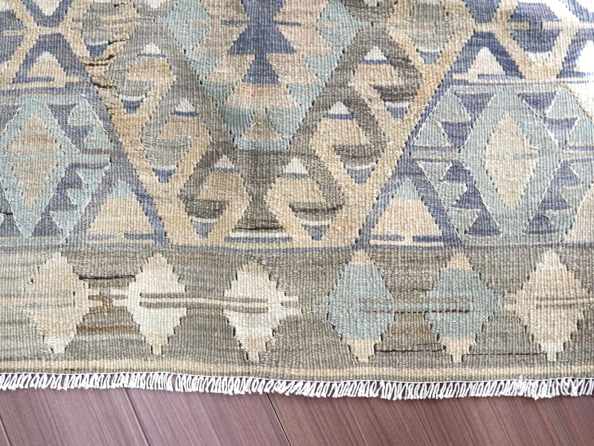 太い糸が使われていてやや厚みがあります。縦糸と横糸にコットンが使われています。目が詰まっています。