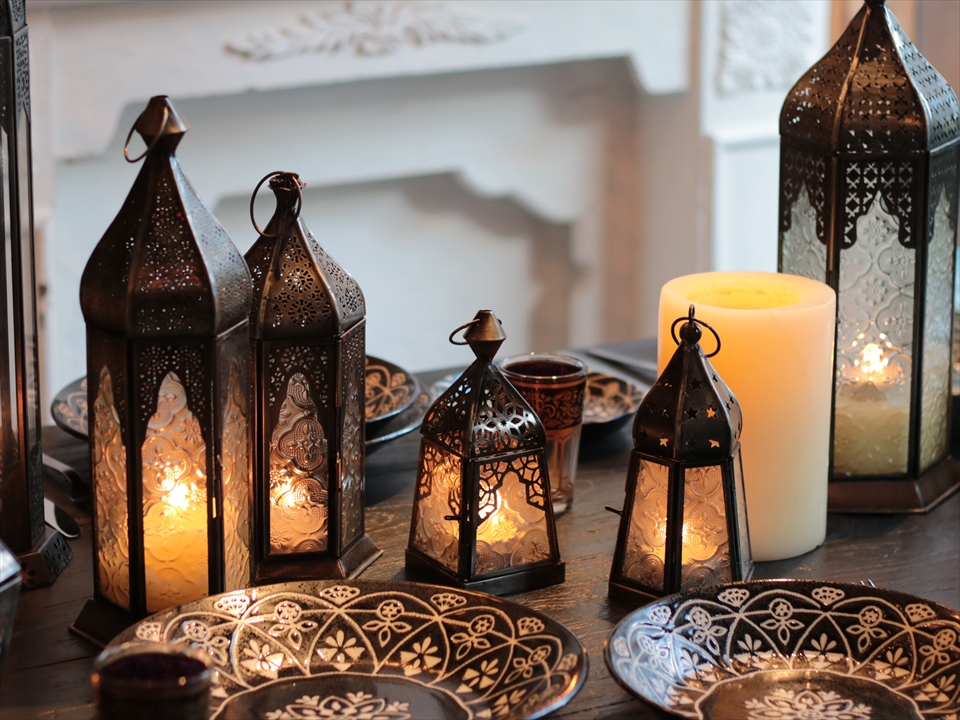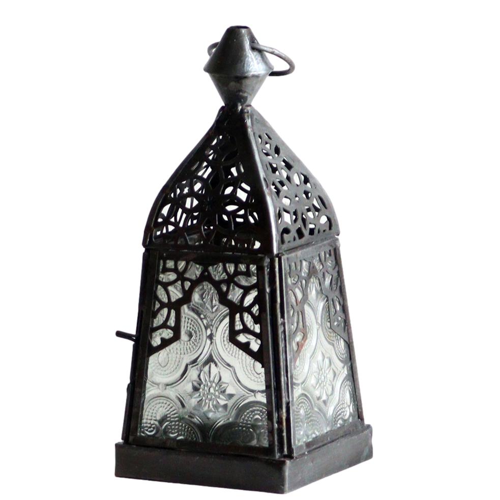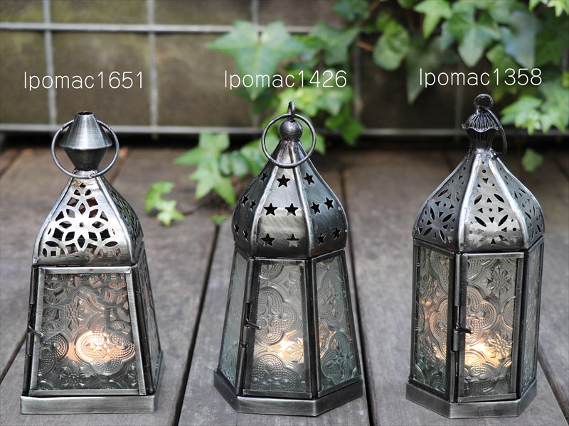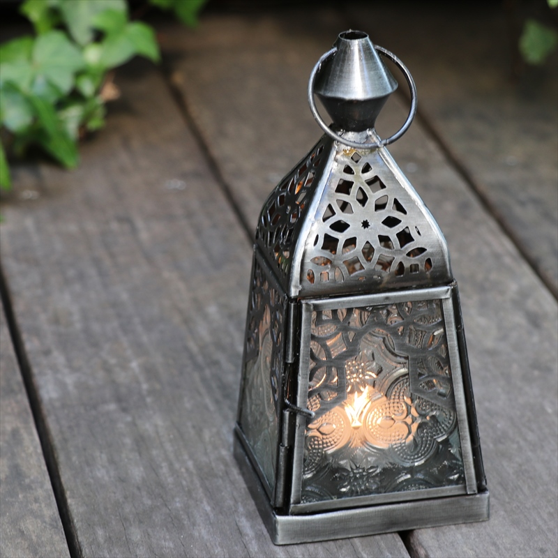 モロッコランタン・キャンドルホルダー 高さ16cm オリエンタルランプ4面のレリーフガラス Morocco Lantern Candle holder