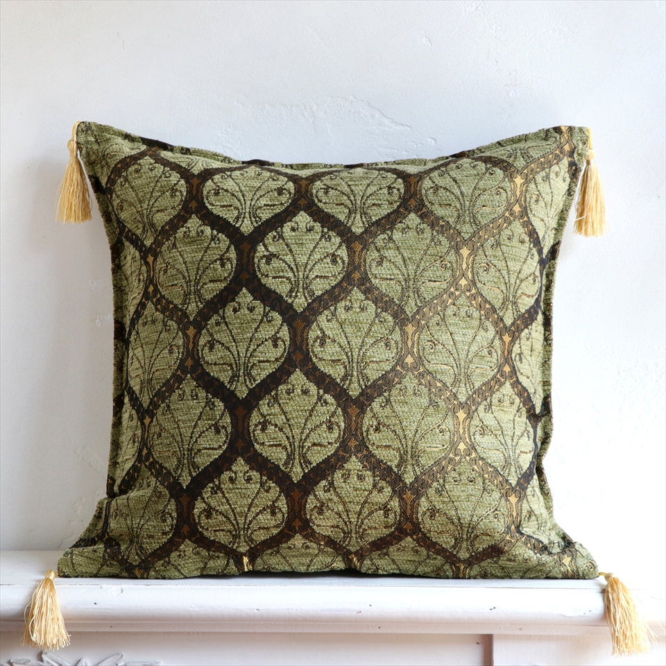 トルコ・クッションカバー 45cm クレスト・ピスタチオ シュニール素材のファブリック