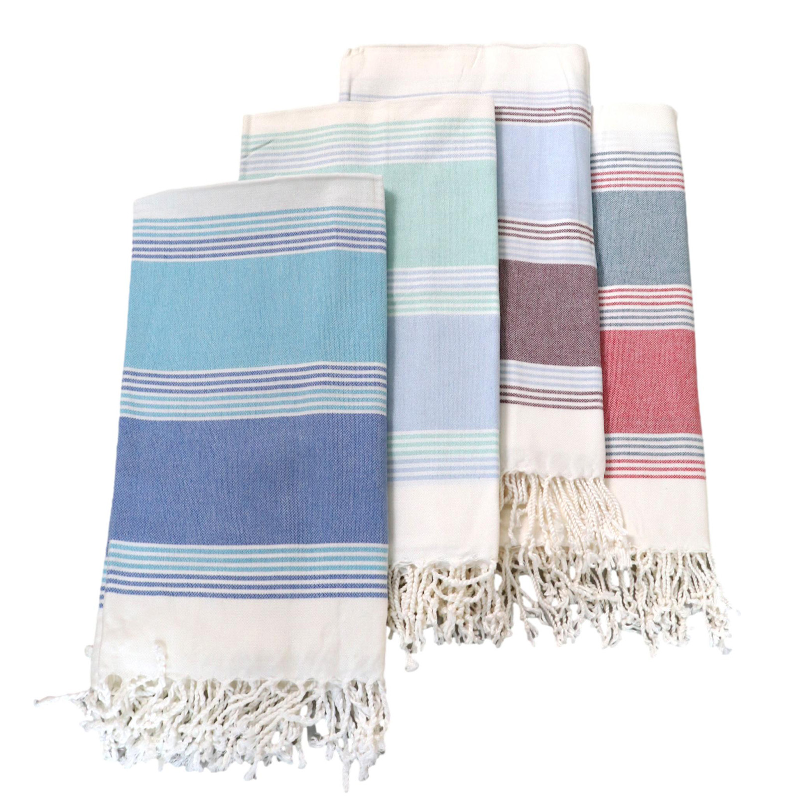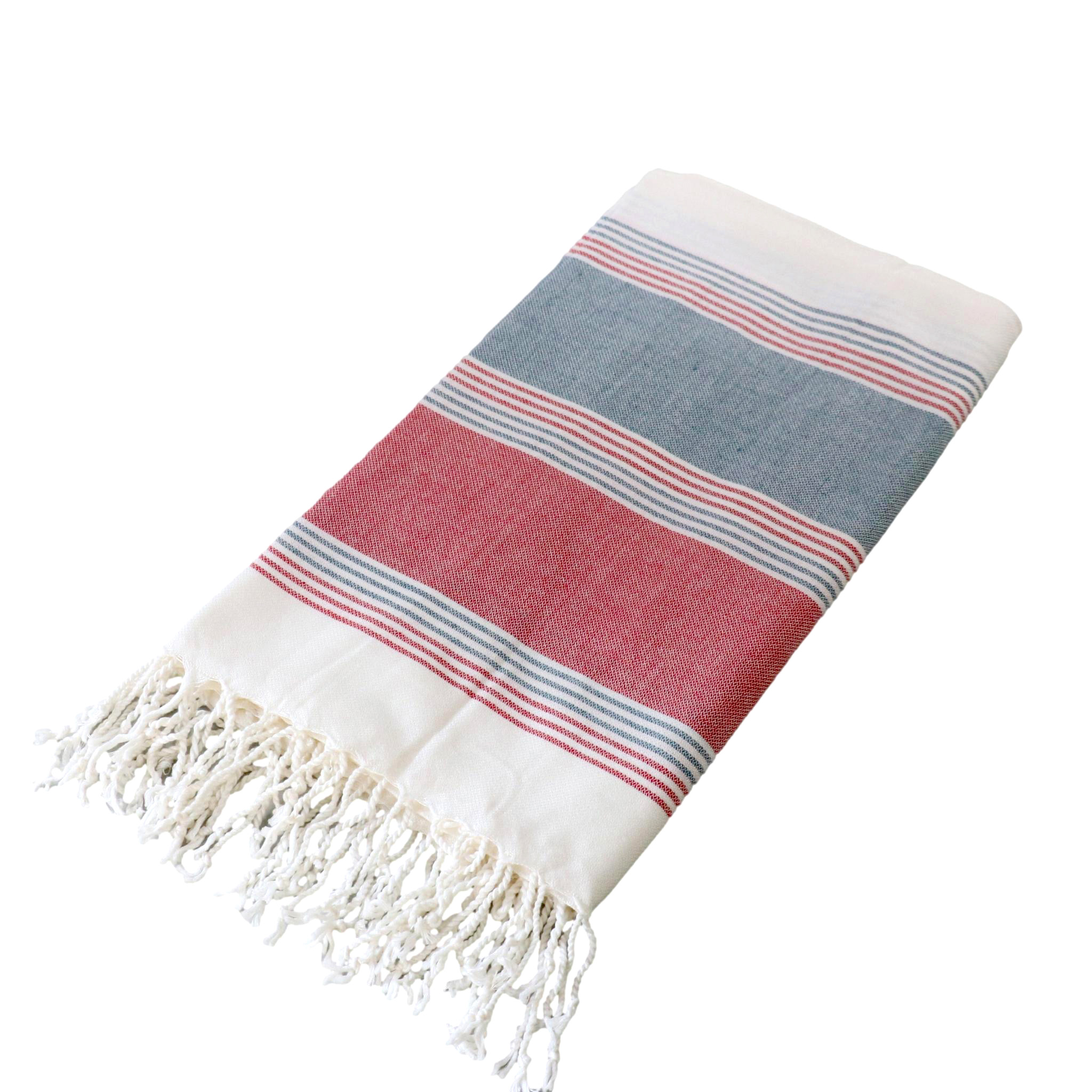 ハマムとは公衆浴場・サウナのことで、ゆったりとスチームのお風呂で汗をかいて、あかすりをしたり、マッサージをしてもらったりします。このときにぐるっと体に巻いたり、体を拭いたりするのに使われているのがこのハマムタオルです。トルコ語でペシュテマルと呼ばれています。平織りのため、パイル地の一般的なタオルとは違い、タオルというよりは日本でいう手ぬぐいのようなものですが、手触りは滑らかで軽くて、薄いです。