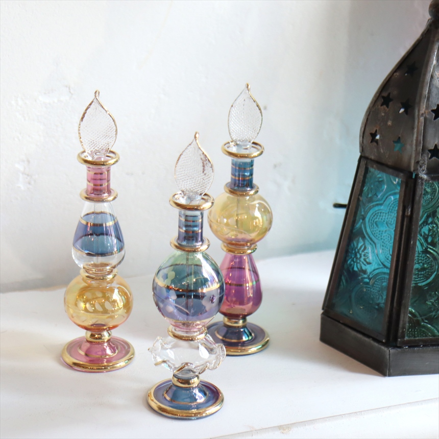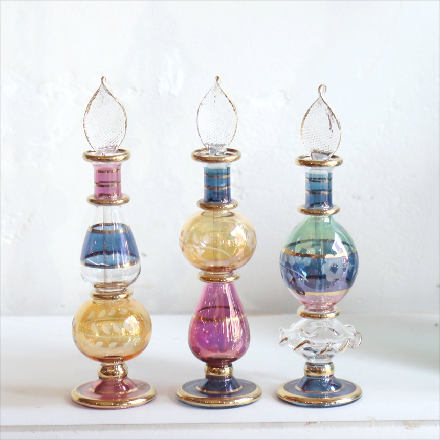 エキゾチックな雰囲気の3色使いのガラス瓶です。