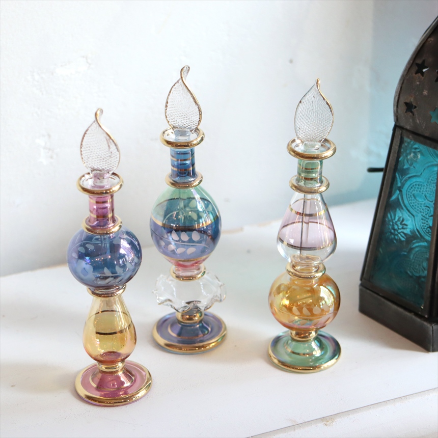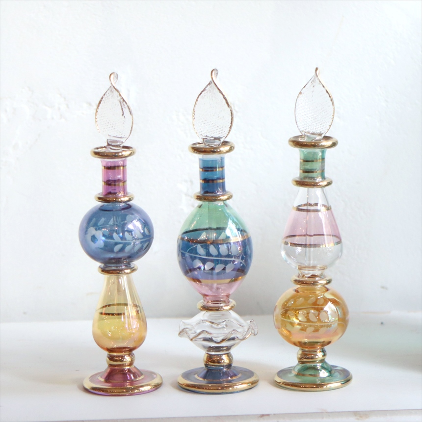 エキゾチックな雰囲気の3色使いのガラス瓶です。
