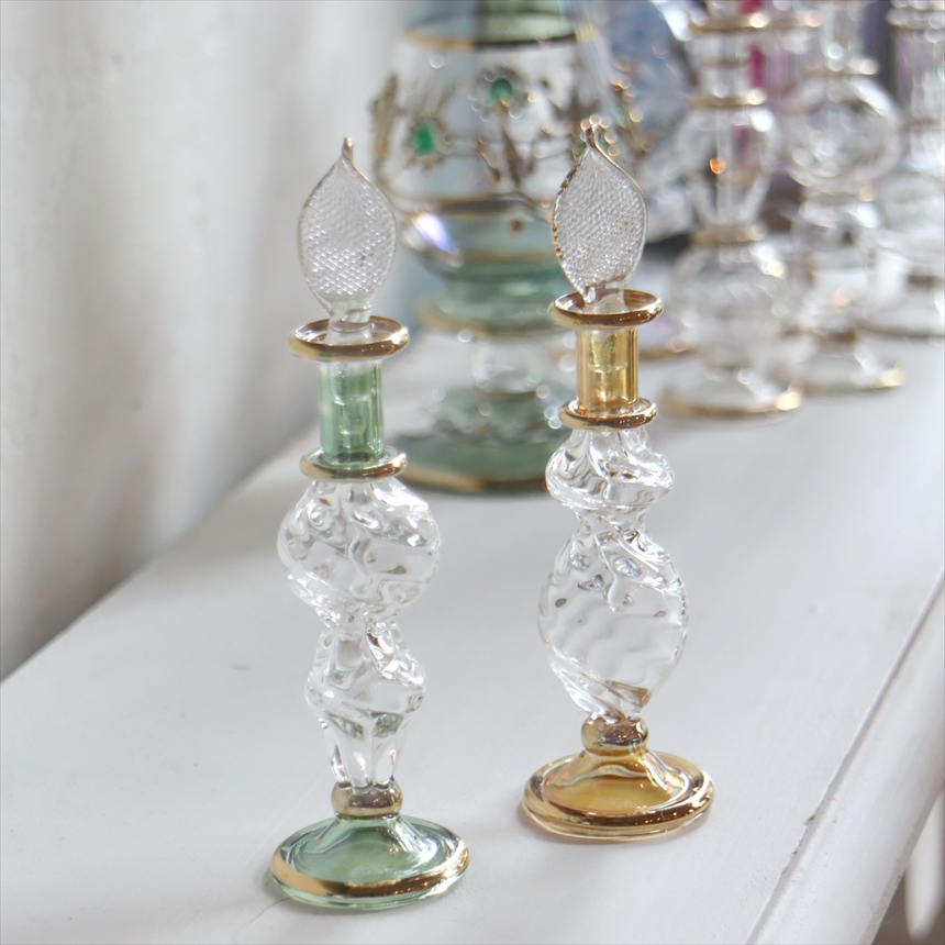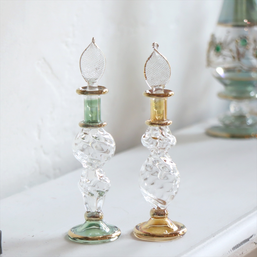 エジプト香水瓶 2本セット クリスタル グリーン&イエロー