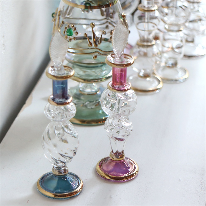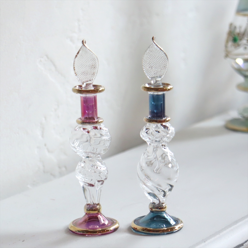 エジプト香水瓶 2本セット クリスタル ブルー&レッド