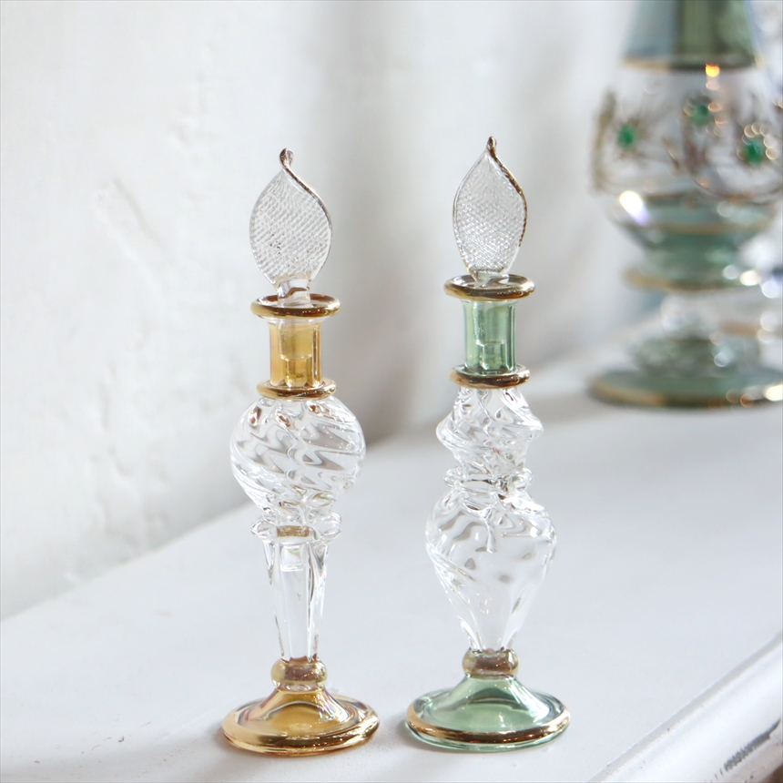 エジプト香水瓶 2本セット クリスタル グリーン&イエロー