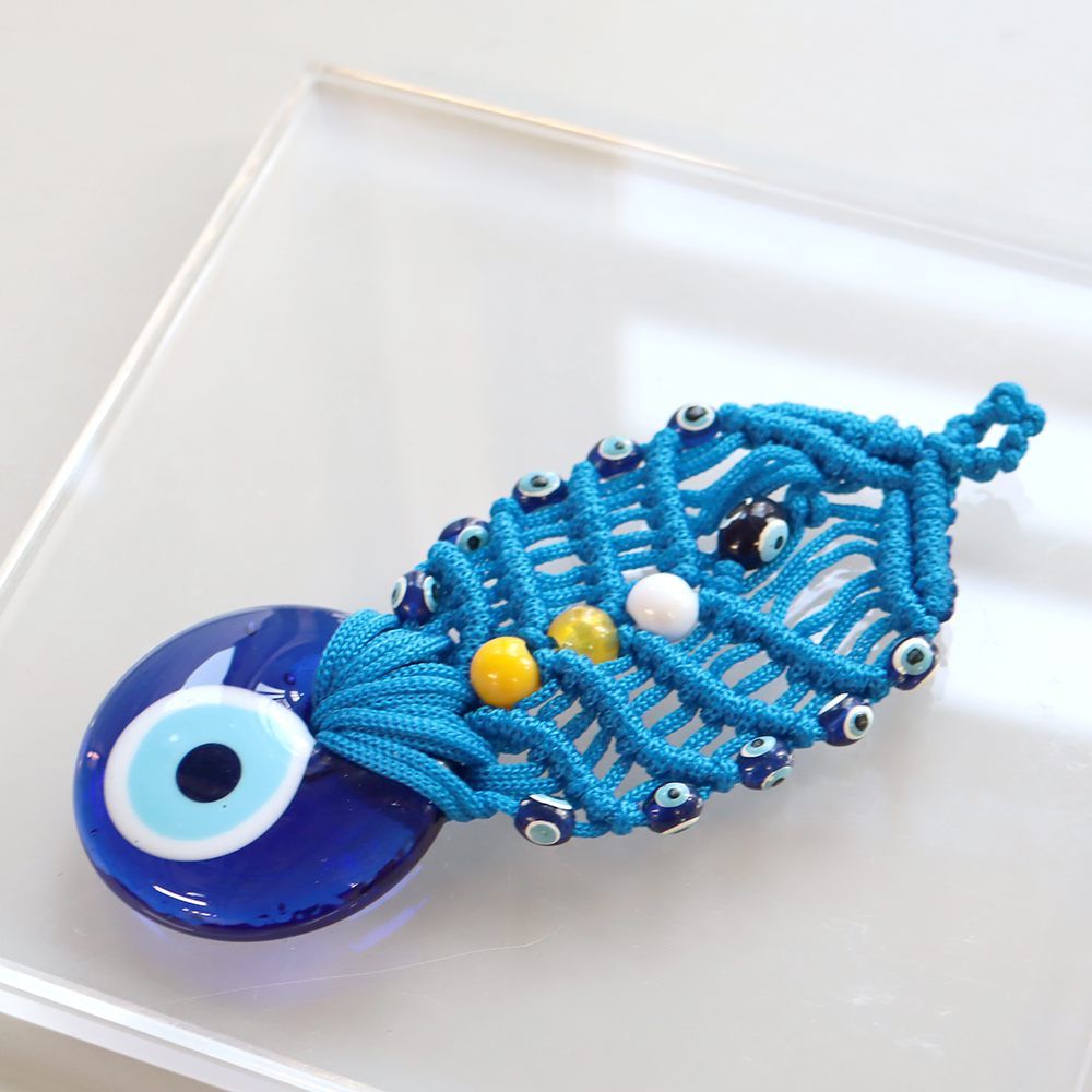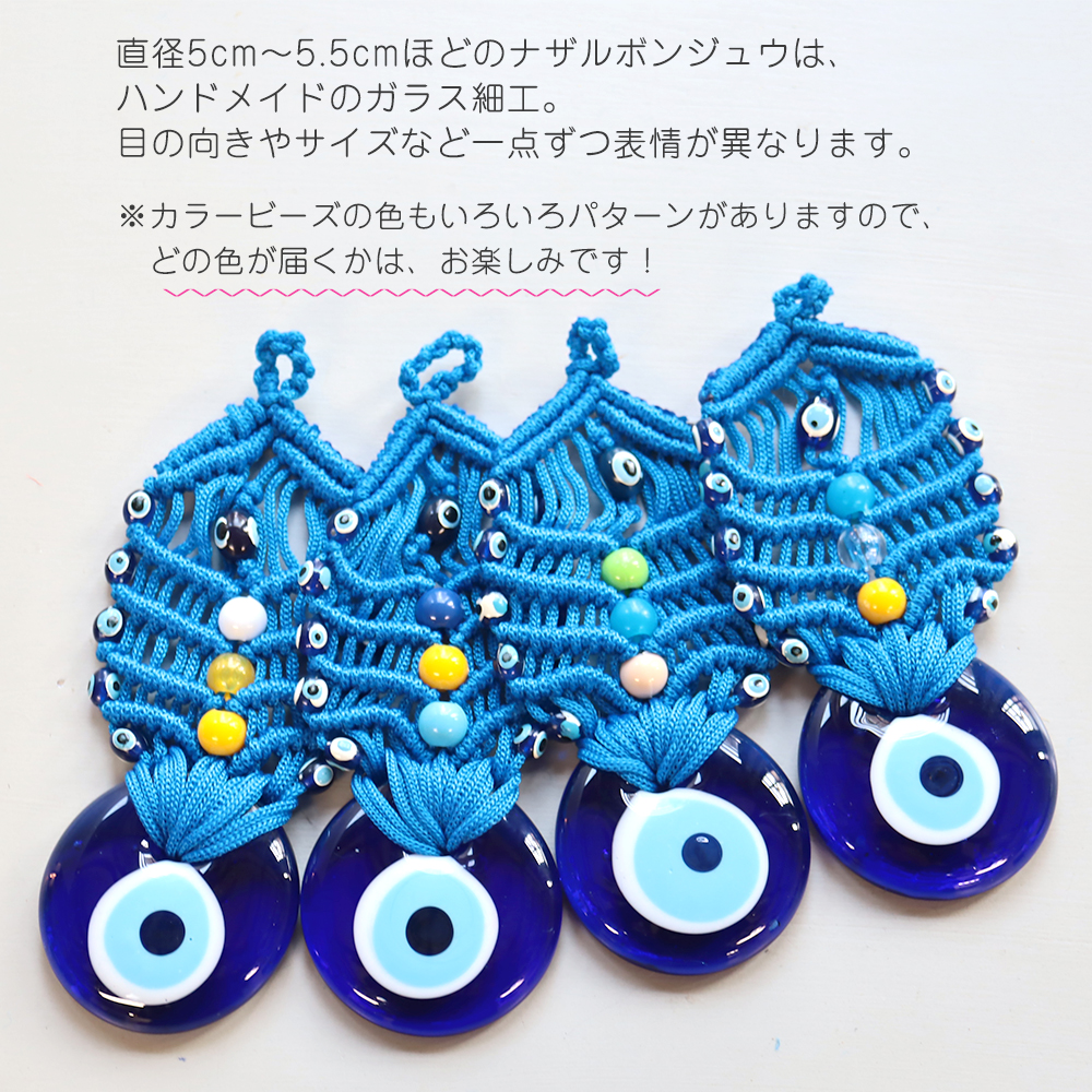 フェニキア時代の古代より地中海に伝わる青い目玉のお守り“ナザルボンジュウ”。魔よけのお守り?と説明されることが多いのですが、悪魔祓いというよりは、他人からのやっかみやジェラシーの目から、自分を守ってくれるためのお守りなのです。ガラスの目玉が割れてしまったときは、自分の代わりにナザルボンジュウが、他人の視線を受け止めてくれた…ということなのだそうです。