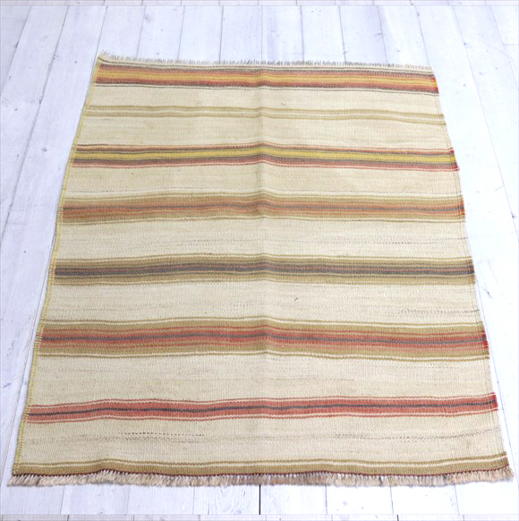 やさしい色使いで、現代のカジュアルなお部屋にもマッチする、すっきりとしたイメージのキリムです。