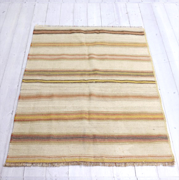 やさしい色使いで、現代のカジュアルなお部屋にもマッチする、すっきりとしたイメージのキリムです。