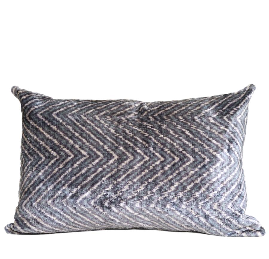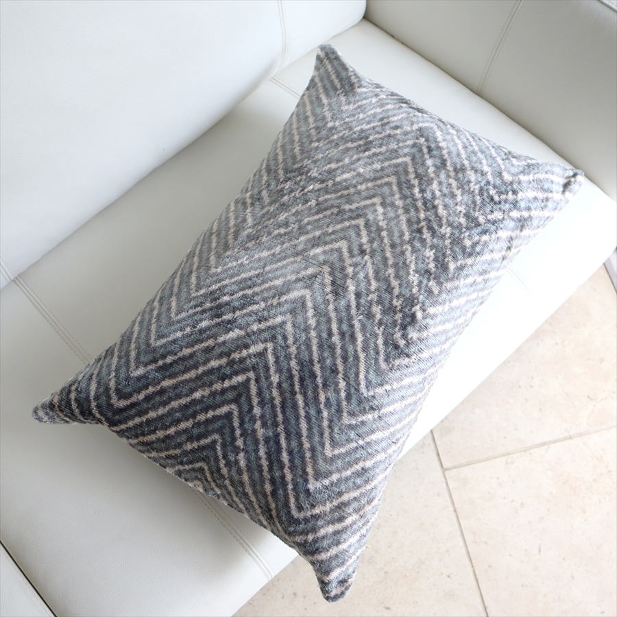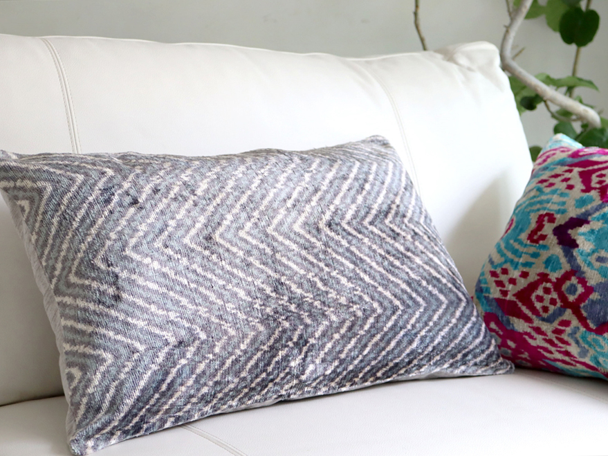 ウズベキスタンで「アトラス」と呼ばれる、中央アジアの女性たちの衣装用に織られた、手機織りの絣布(かすり・イカット)を使ったクッションカバー。