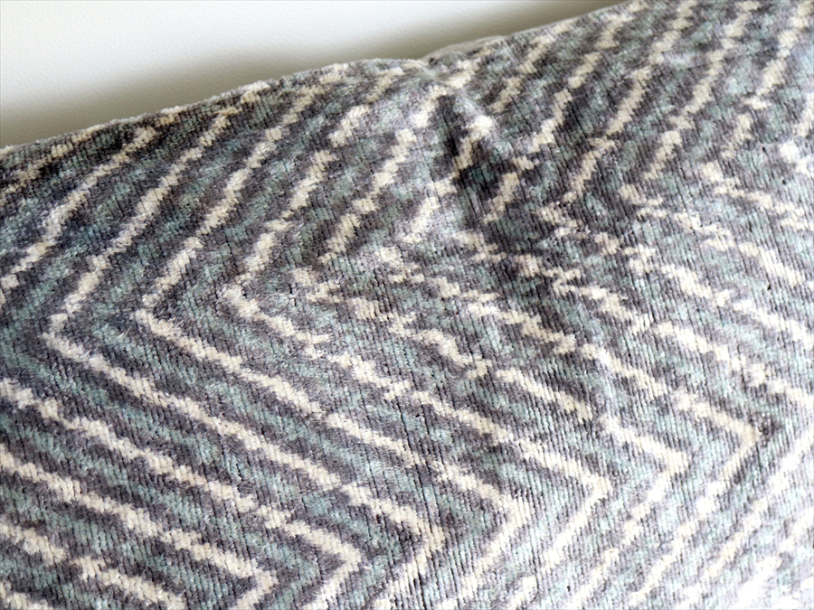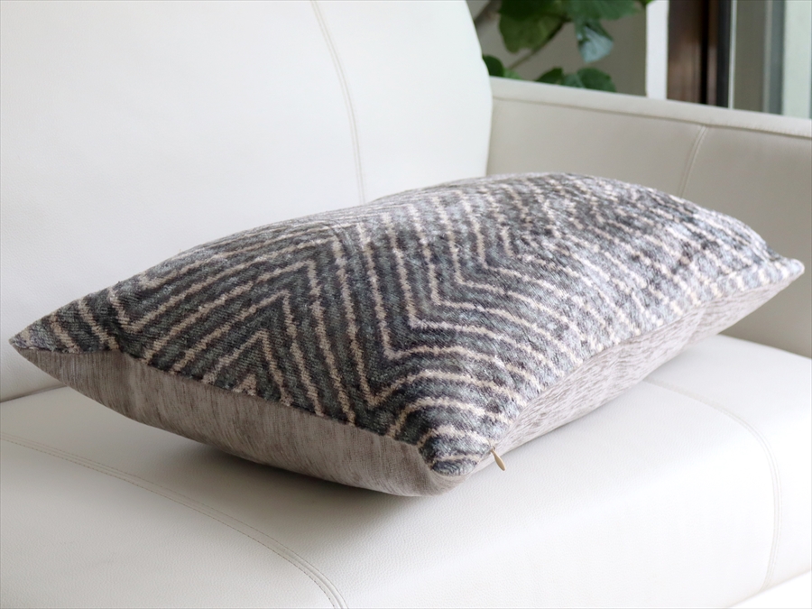表面は起毛(ベルベット・イカット)していて柔らかな手触り。裏面はシンプルな無地のシュニール生地です。