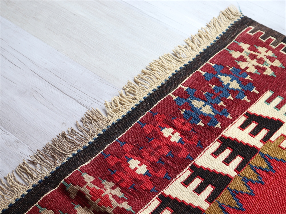 パリッとした手触りで張りのある1枚です。生命の樹のグリーンの、一部色が変わっている部分は、修理ではなくオリジナルの色使いです。年代なりの落ち着いた色にはなっていますが、織られた当時の印象が残っている一枚です。
