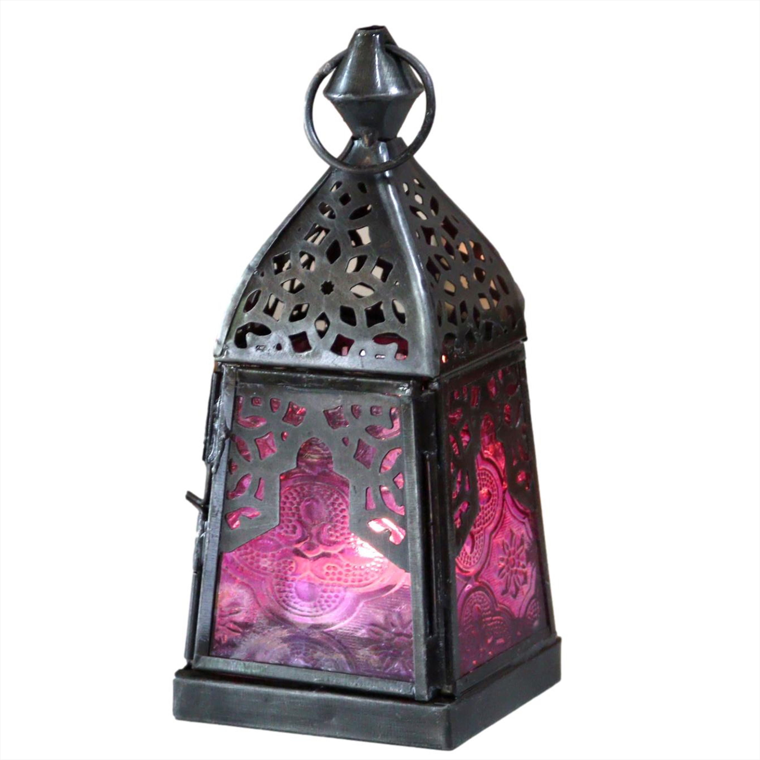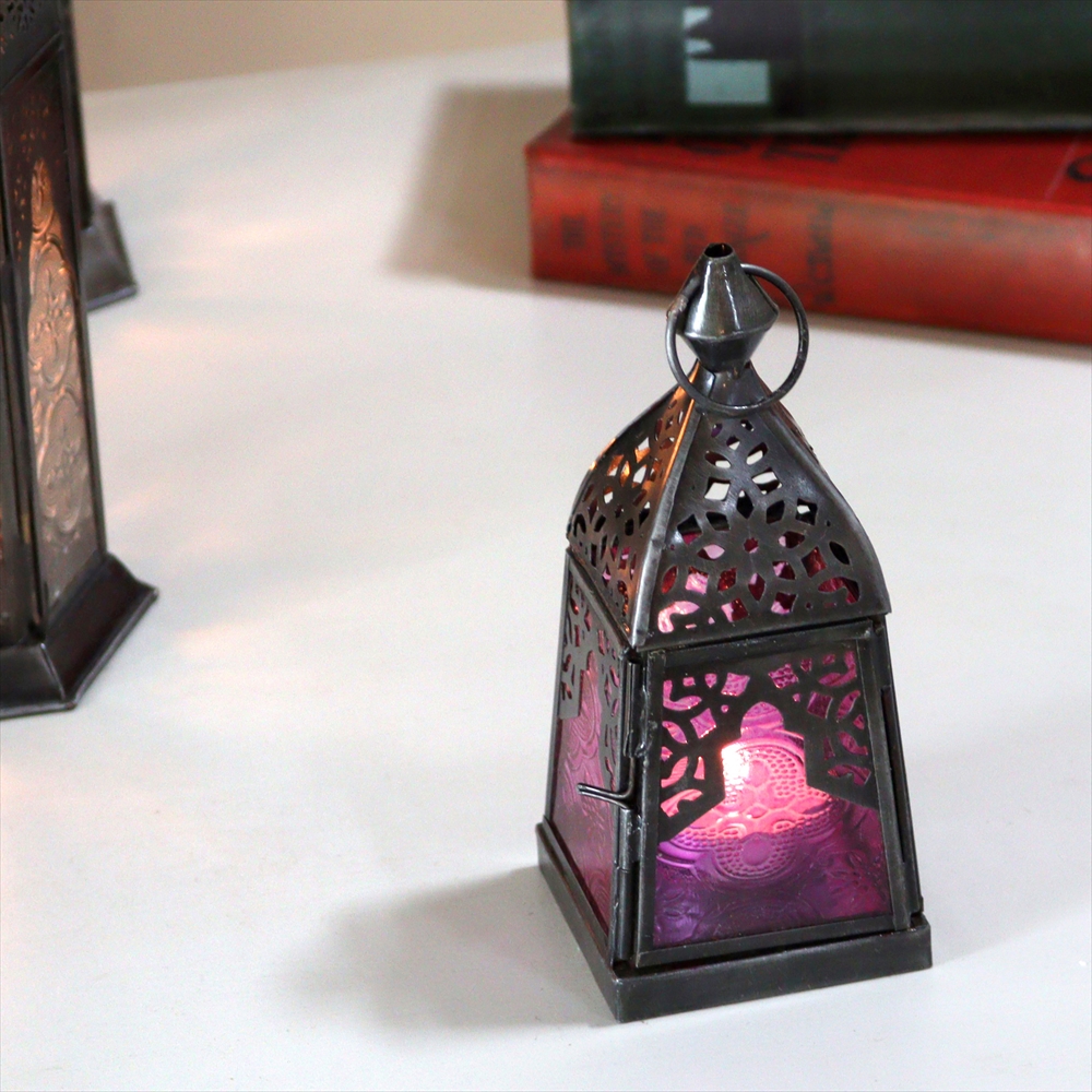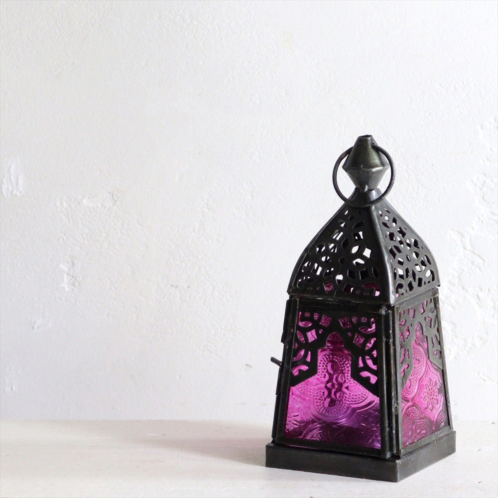 モロッコランタン・キャンドルホルダー 高さ16cm オリエンタルランプ4面のレリーフガラス Morocco Lantern Candle holder