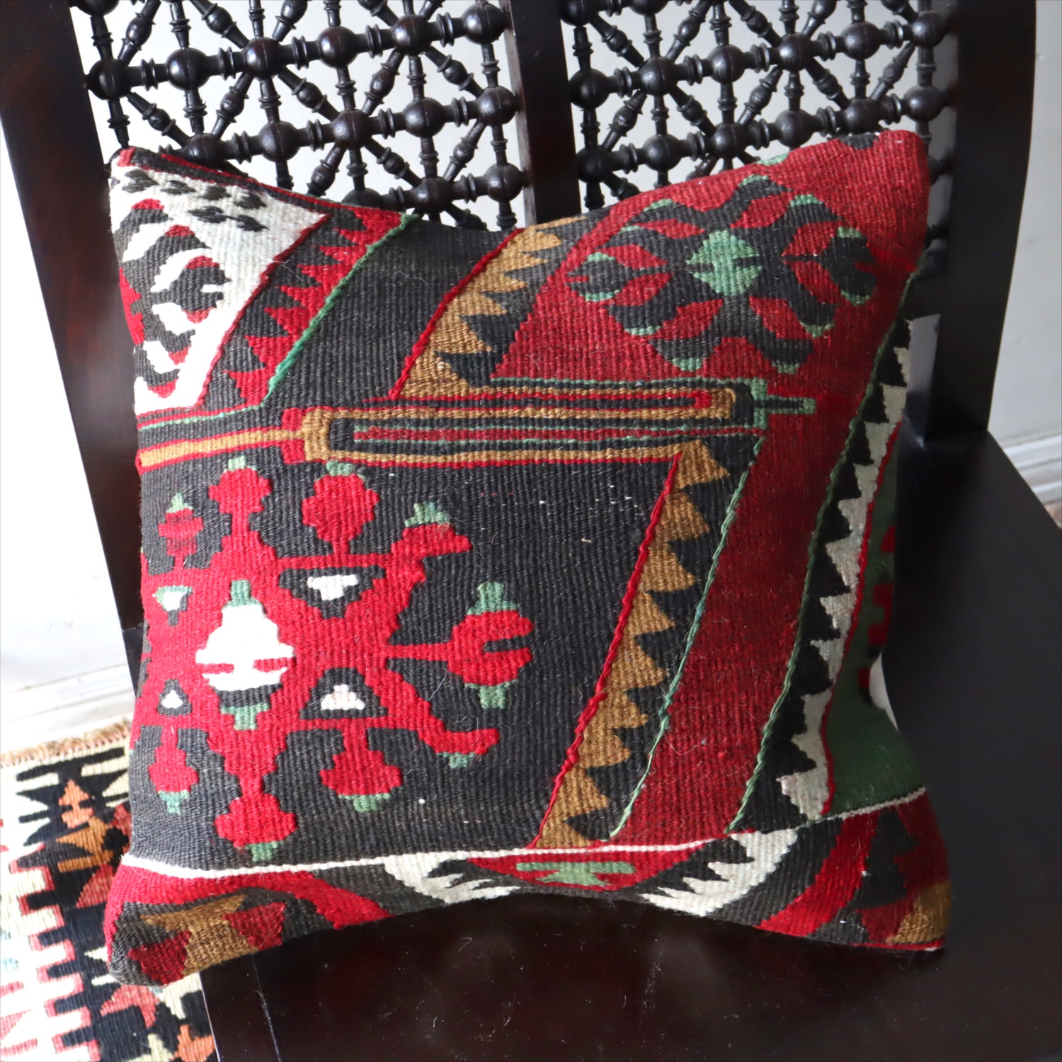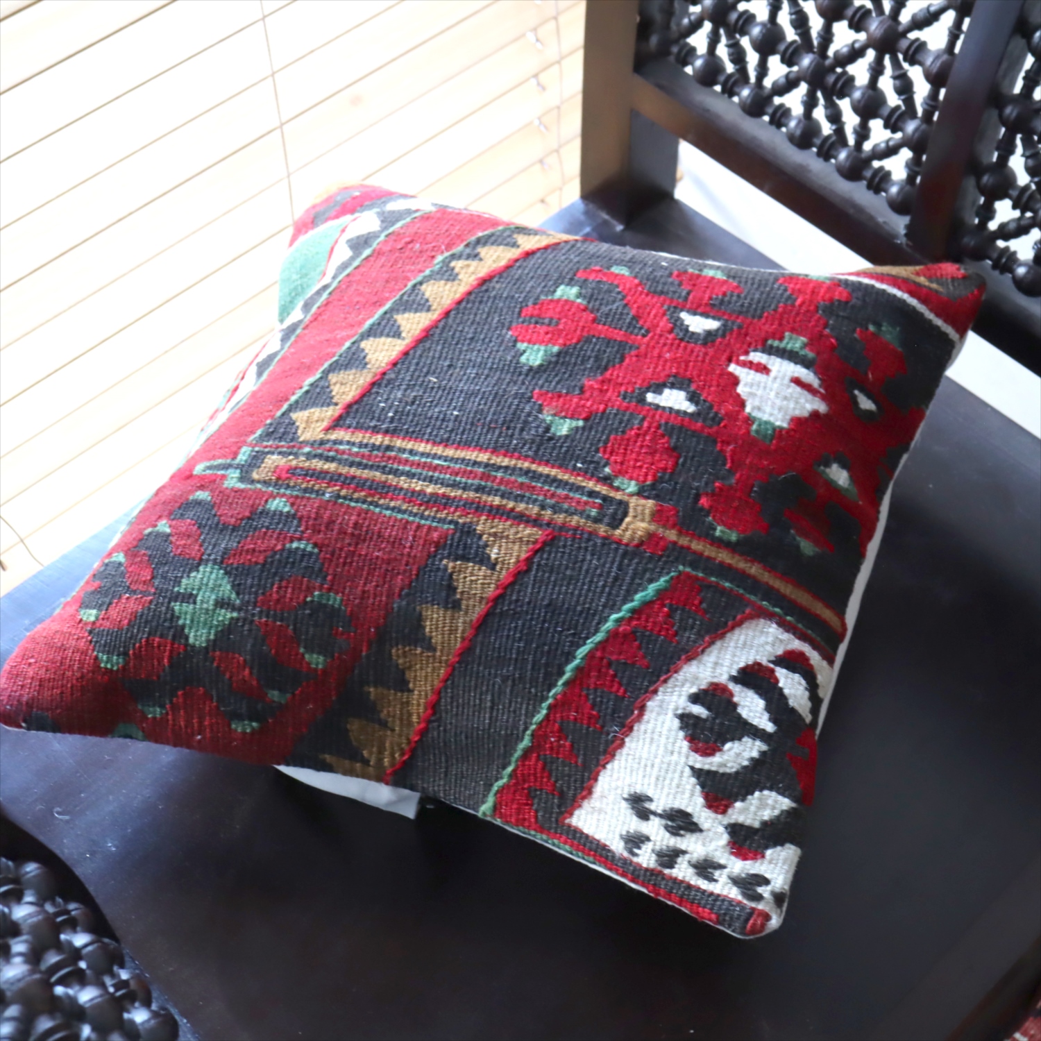 20世紀中頃に、アナトリア(トルコ)東部、マラテヤ地方またはシワス地方で織られたもので、年代は古いものの、大切に保管されており、織られた当時のままの鮮やかな色が残っています。お部屋でクッションとしてお使いいただく間に、少しずつ褪色してやわらかな色に変化すると想像できます。