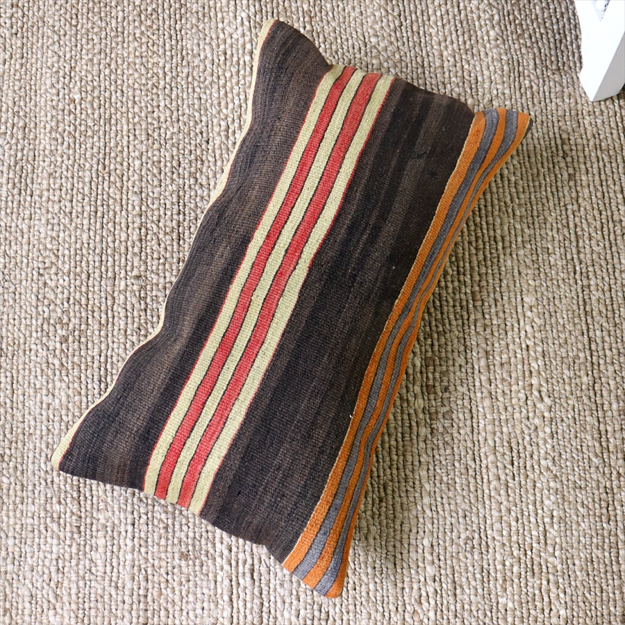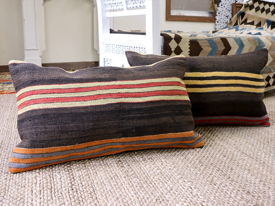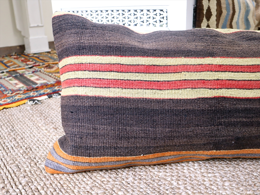 トルコ南部、地中海に面したアダナ地方のキリムからのカットピース。緑とブルーは日焼けしてパステルカラーになっています。ブラウン地の部分にも毛糸の色の変化が出て、シンプルながら表情があります。